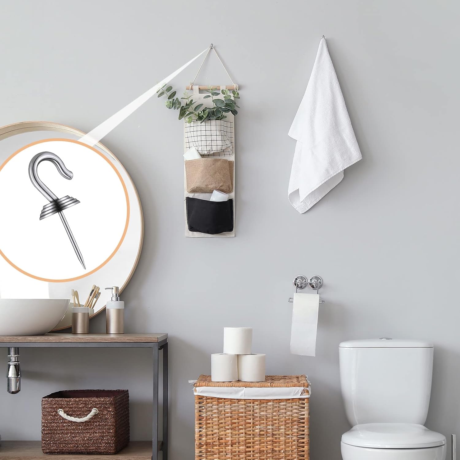 Hotop 30 Pieces Push Pin Wall Hooks Metal Thumb Tack Hangers Iron Alloy Nail Decorative Picture Hooks for 20 Lbs Home Office School Party Supply (Silver)
