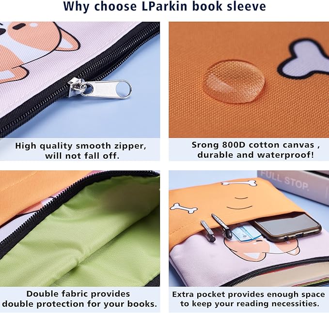 - High Quality Book Sleeve:This book cover protector is made of high-quality 800D canvas and waterproof material and,strong zipper, waterproof, wear and durable.It saves pages of paperback books from being accidentally torn, better protect your books and items.(or if your bag isn't weatherproof, it helps keep the book dry)