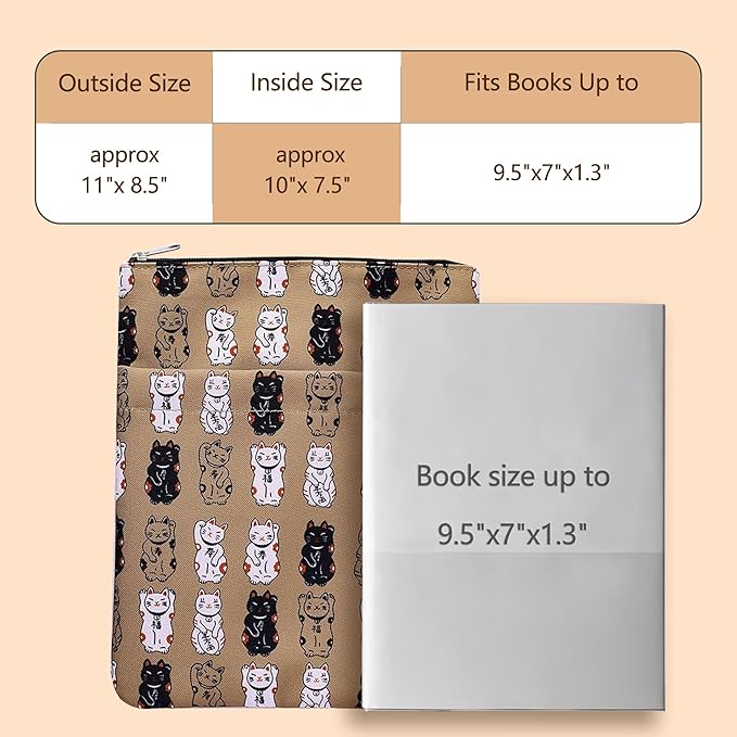 - 📔【Lucky Japanese Cat】 - This Lucky Cat book sleeve is a stylish way to protect your books from dust and pages from getting ripped. The cute Lucky Cat motif makes this cover not only an essential accessory, but also a wonderful and memorable gift for book lovers.This item is not intended for use by children 3 and under.