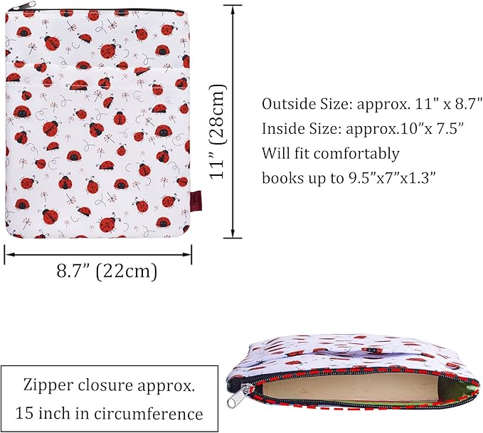 - 【Size and Design】 - This book sleeve is measured approximately 11”x8.7"(28 x 22cm) and fits most self published books , standard paperbacks, mass paperbacks, and regular hardcovers.The patterns of our book sleeve is designed with vivid funny ladybug patterns. Ladybug means bravery, hope, happiness, luck, perfect gift for a ladybug book lover.