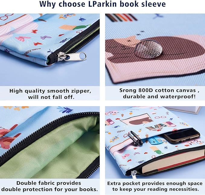 - 💪【Why choose LParkin book sleeve?】LParkin book sleeve is made of high-quality 800D canvas and waterproof material, and strict tailoring technology ensures that the book sleeve you receive is perfect. No irritating smelling, No harm to health, No low-grade materials. It's just a high-quality book sleeve!