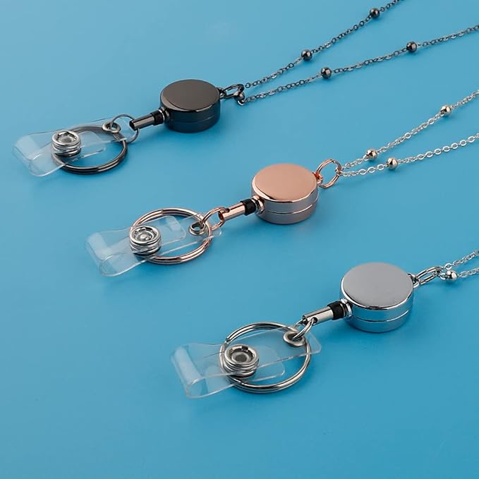 - 【Value Combination】3 Pcs beaded badge lanyards, three colors of black,silver and rose gold; 3 pcs retractable reel clip; 6 pcs waterproof badge holders, horizontal and vertical two styles, easily meet your different needs