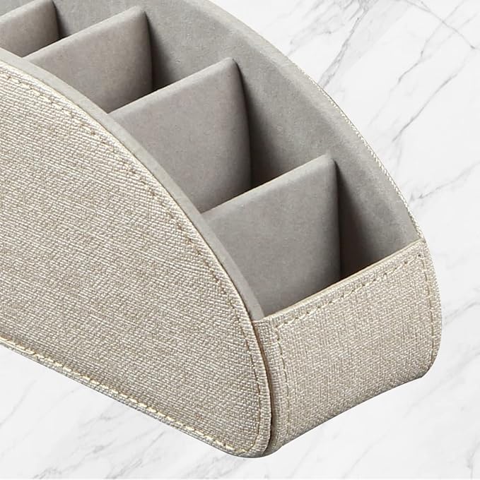 - MULTI-FUNCTIONAL: 5 compartments tv remote holder to storage universal remote controllers for netflix, air conditioner, cable box, roku, apple TV, amazon fire stick, stereo, soundbars, and a desk organizer for mobile phone, small electronic media accessories, cosmetic, brush pen and glasses, pens/pencil and other office stationery.