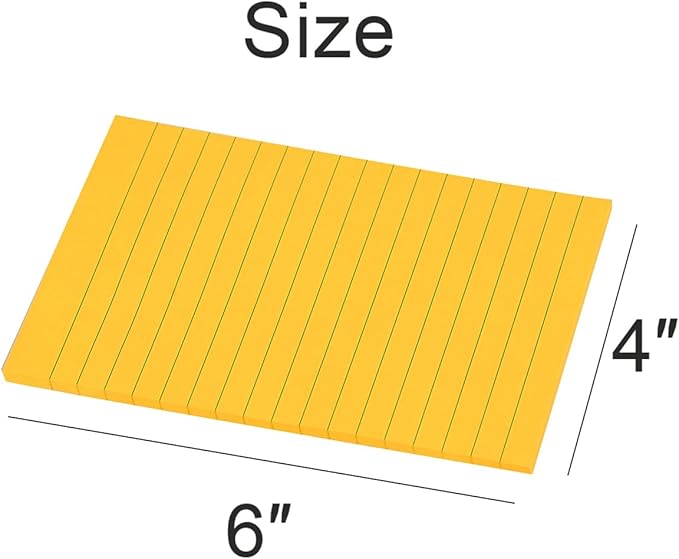 Vanpad Lined Sticky Notes 4X6 in Bright Orange Ruled Stickies Super Sticking Power Memo Pads Strong Adhesive, 6 Pads/Pack, 45 Sheets/pad
