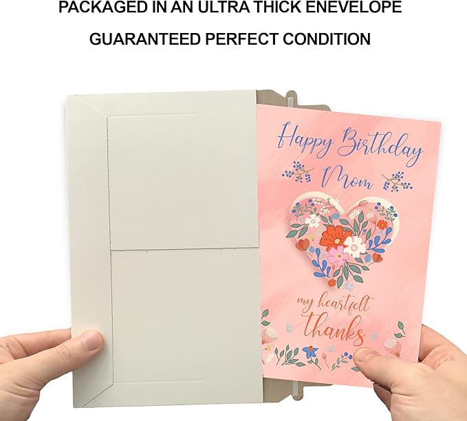 Prime Greetings Heartfelt Birthday Card For Mom (Mother), Made in America, Eco-Friendly, Thick Card Stock with Premium Envelope 5in x 7.75in, Packaged in Protective Mailer