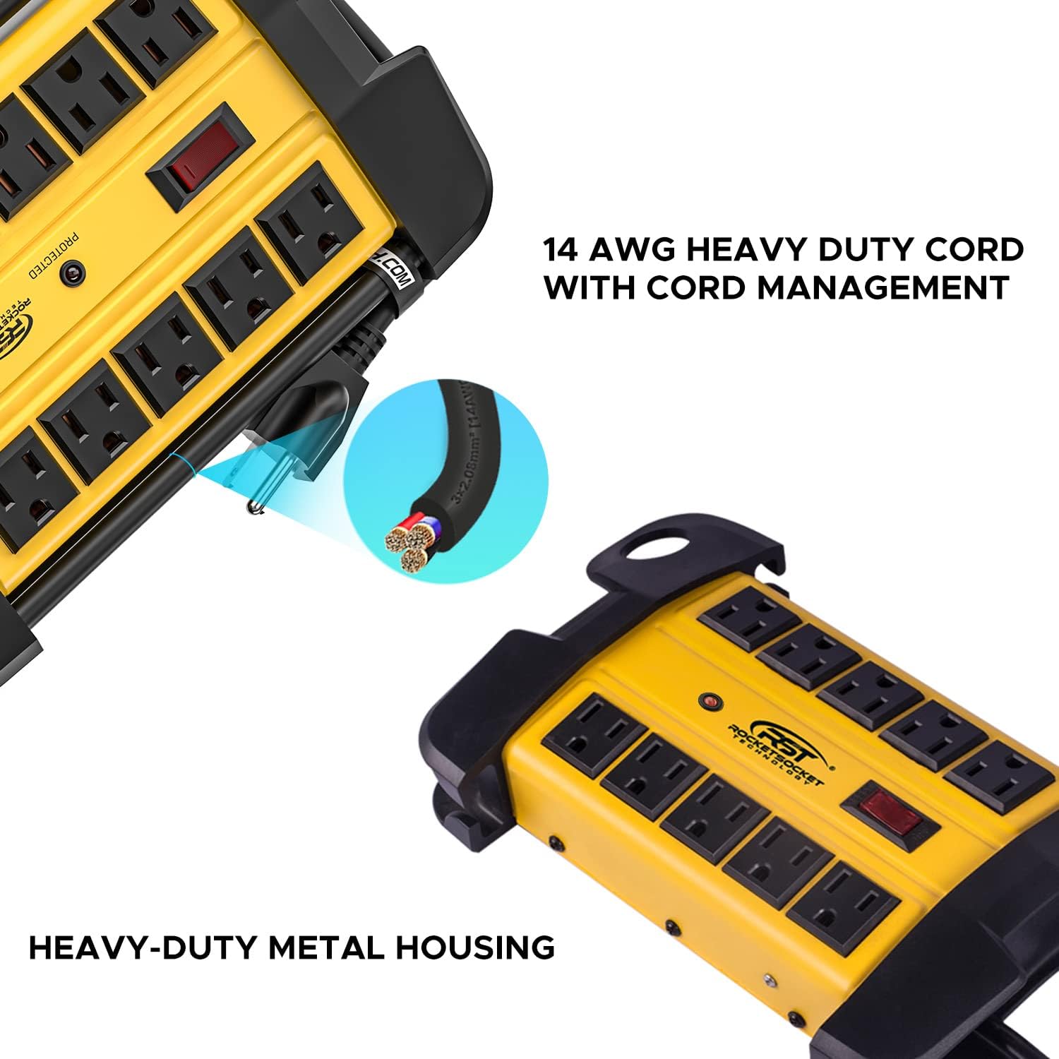 CRST Heavy Duty Surge Protector Power Strip 10-Outlet Metal Industrial Power Strip with 2800 Joules, 15A Circuit Breaker, 14 Gague 6ft Extension Cord for Workshop, Garage, Office, School…
