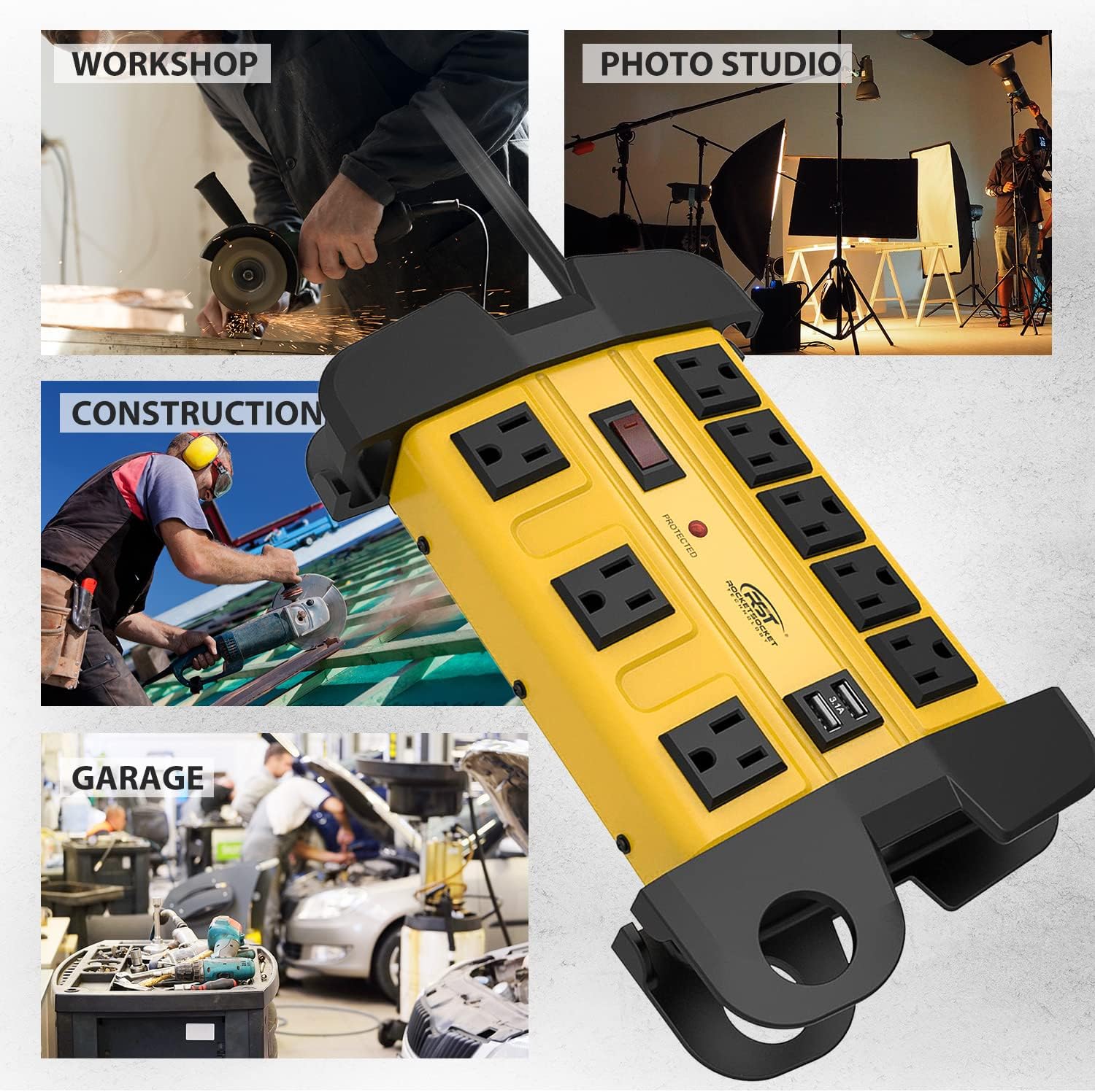 Heavy Duty Surge Protector Power Strip with 2 USB Ports, CRST 8-Outlet Metal Industrial Power Block with 15A Circuit Breaker, 6ft Extension Cord, 1350 Joules for Workshop, Garage, Office, Shop…