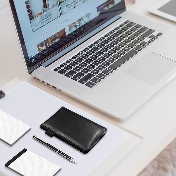 - Notepad Set Contain: You will get 1 mini pocket notepad holder with 50 lined sheets, 1 rotating metal pen and 5 memo book refills with 30 lined paper per pad, They are ruled pages, can write comfortably, good for business, conference, meeting, office and travel. Christmas gifts for mens womens grandpa dad grandma mum