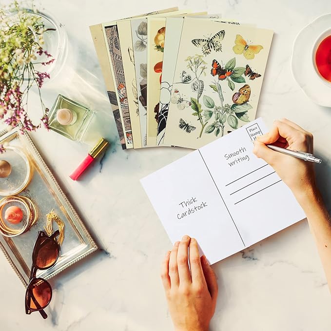 Gersoniel 60 PCS Vintage Collection Postcard Set Retro Style Botanical Butterfly Mushroom Nature and Ephemera Postcards for DIY Card Paper