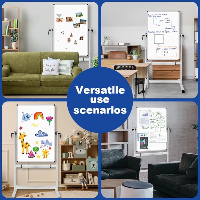 - 【PERFECT ROLLING WHITEBOARD WITH FLIP & LOCK SYSTEM】This rolling magnetic whiteboard with stand has 4 easy rolling caster 360° wheels that offer you the convenience of mobility. And each wheel is equipped with a locking system for keeping the ROLLING WHITE BOARD stable.