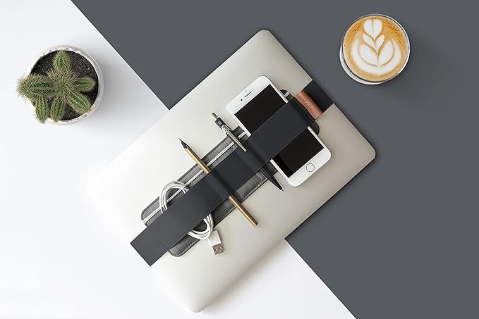 - PERFECT LAPTOP COMPLEMENT: Smart, flexible design for organizing and carrying essentials attached to your laptop or notebook. Includes flat pockets for slim accessories, a flexible pouch for bulkier items, and elastic bands for small items. Keeps your desk neat and organized.