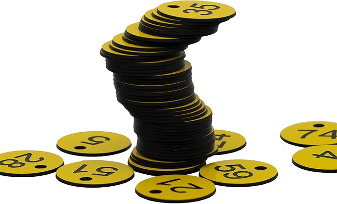 StayMax Plastic ID Number Tags Engraved Tags Key Tags Without Key Rings (101-200, Yellow)