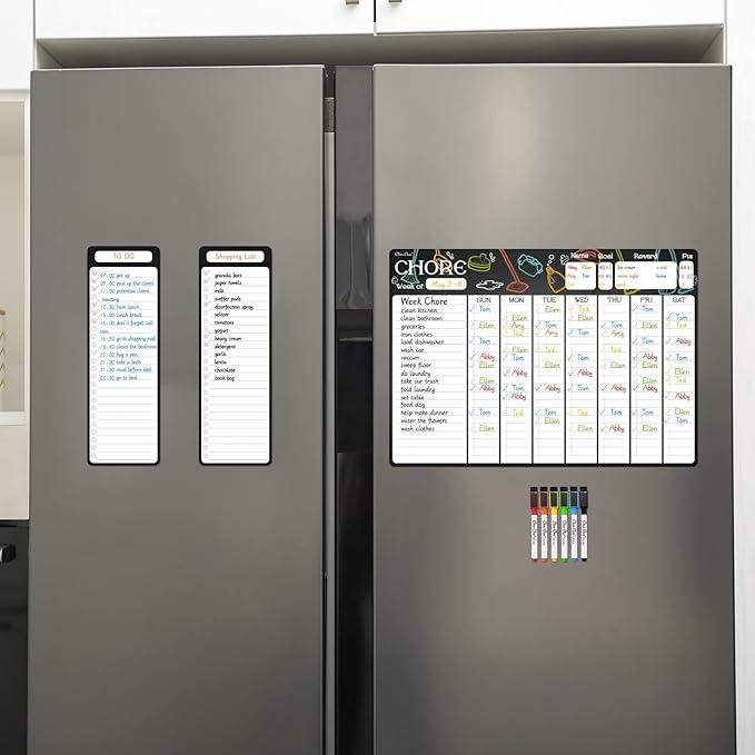 - Magnetic chore chart - Teach responsibility with our 17"x12" magnetic chore chart. It features 20 lines to track chores, making organization a breeze for kids, teens, and adults alike.