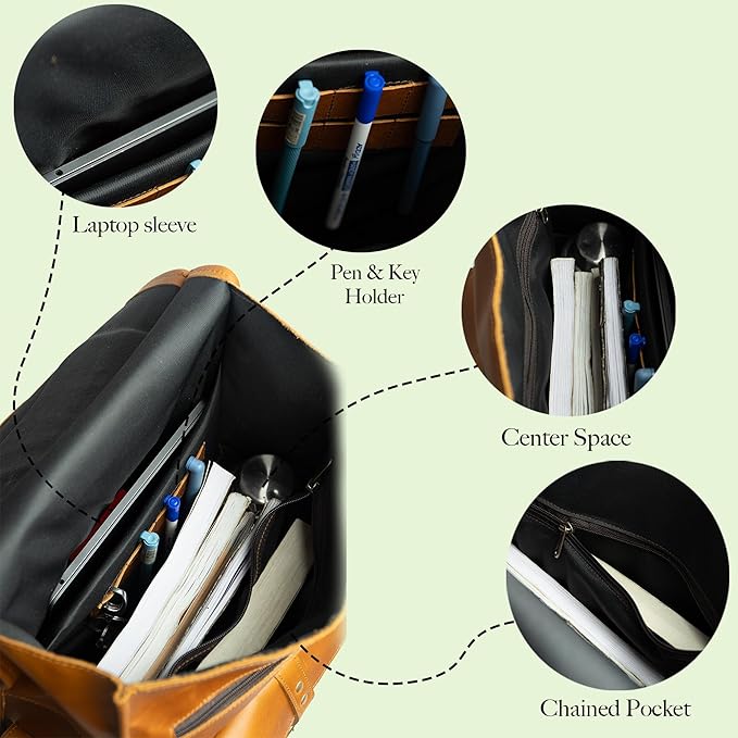 - STORAGE: Featuring a generously cushioned laptop compartment, along with a spacious main compartment capable of accommodating a wide array of items, including books, clothing, an iPad, journals, and more. Additionally, there is an interior zipper compartment for added organization.