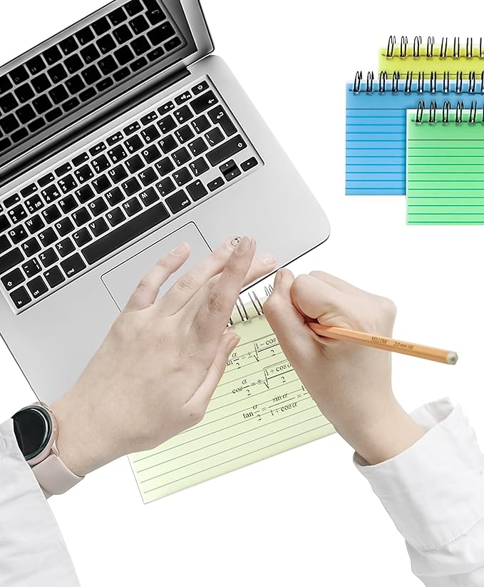 - Size: These spiral notecards are 3.3 x 5 inches/8.5 x 12.5 cm in size, which are small and portable; You can put them in your coat pocket, jeans pocket, purse and handbag and these index cards on a spiral ring are made of thick paper, which are reliable, not easy to wrinkle, smooth and suitable for writing