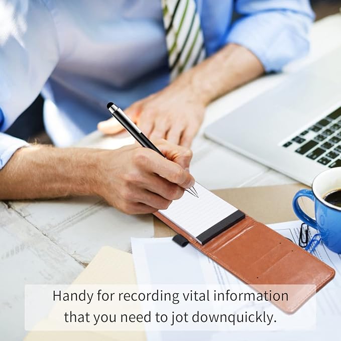 - Notepad Set Contain: You will get 1 mini pocket notepad holder with 50 lined sheets, 1 rotating metal pen and 5 memo book refills with 30 lined paper per pad, They are ruled pages, can write comfortably, good for business, conference, meeting, office and travel.