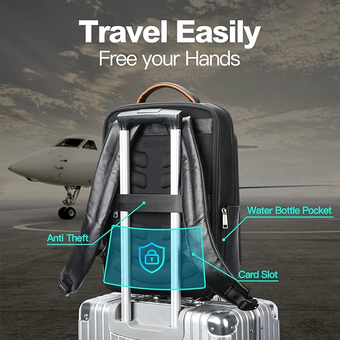 BOPai Genuine Leather Backpack for Men Multifunctional 15.6 inch Laptop Executive Business Travel Friendly Intelligent High Tech Rucksack USB Professional Anti Theft Large Capacity Classic Black
