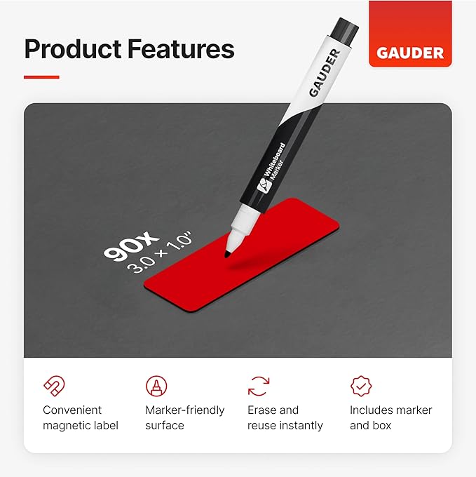 • REUSABLE AND SUSTAINABLE: GAUDER magnetic labels can be written on with the included whiteboard marker and reused repeatedly.