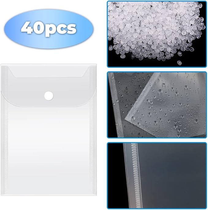 Vmiapxo 40 Pack Stamp and Die Storage Pockets, Reusable Small Plastic Envelopes Waterproof Sticker Organizer Receipt Holder Photo Storage Folders (5" x 7")