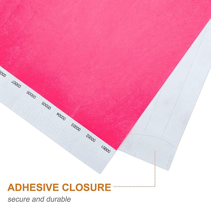 100 Pcs Wristbands, 1-100 Consecutive Numbers Waterproof Tearproof and Printable Wrist Straps Admission Bracelets Tickets (NeonPink)