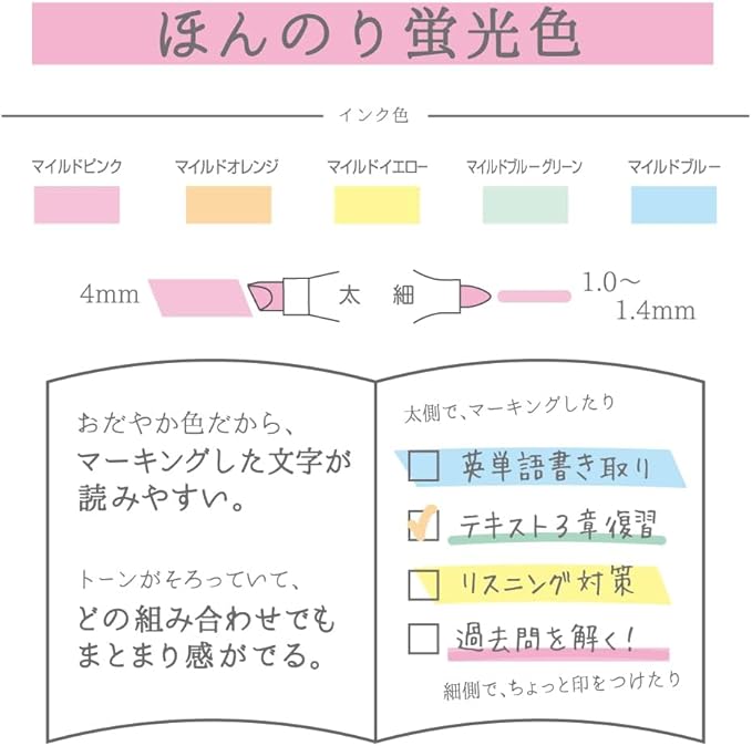 ZEBRA WKT7-5C-N Highlighter, Mildliner, Faint Fluorescent Colors, 5 Colors