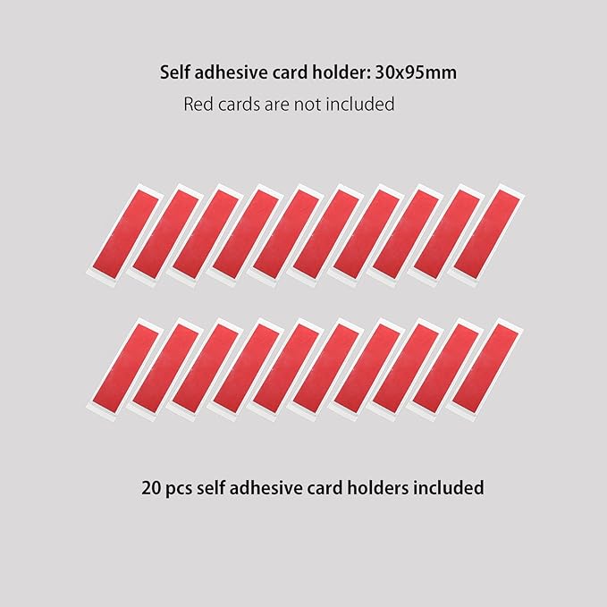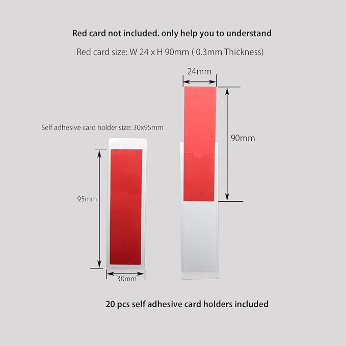 - 【Self adhesive clear Pocket Size】This Self adhesive clear pocket Size:Opening 30x95mm (1.18"x3.74"). 20 pieces included. The card should be 3-5mm smaller than this self adhesive card holder.