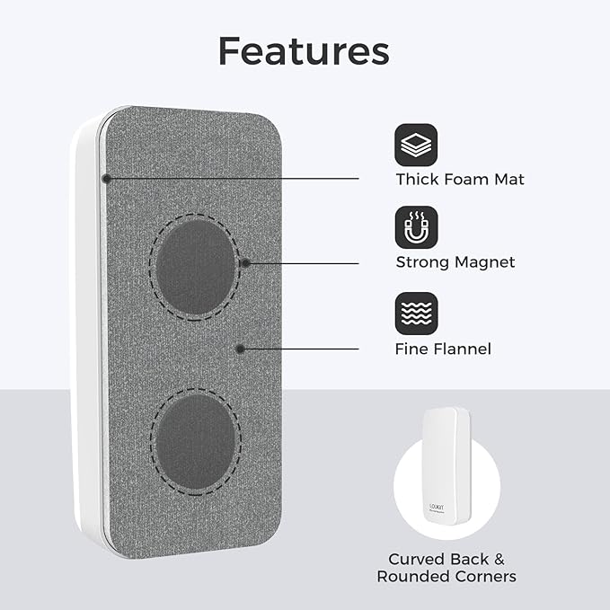 LOUKIN 2 Pack Magnetic Dry Erase Eraser, Whiteboard Eraser, Glass Board Eraser(White), 3.4 fl oz Whiteboard Cleaner * 2 Included, for Classroom, Home and Office Use
