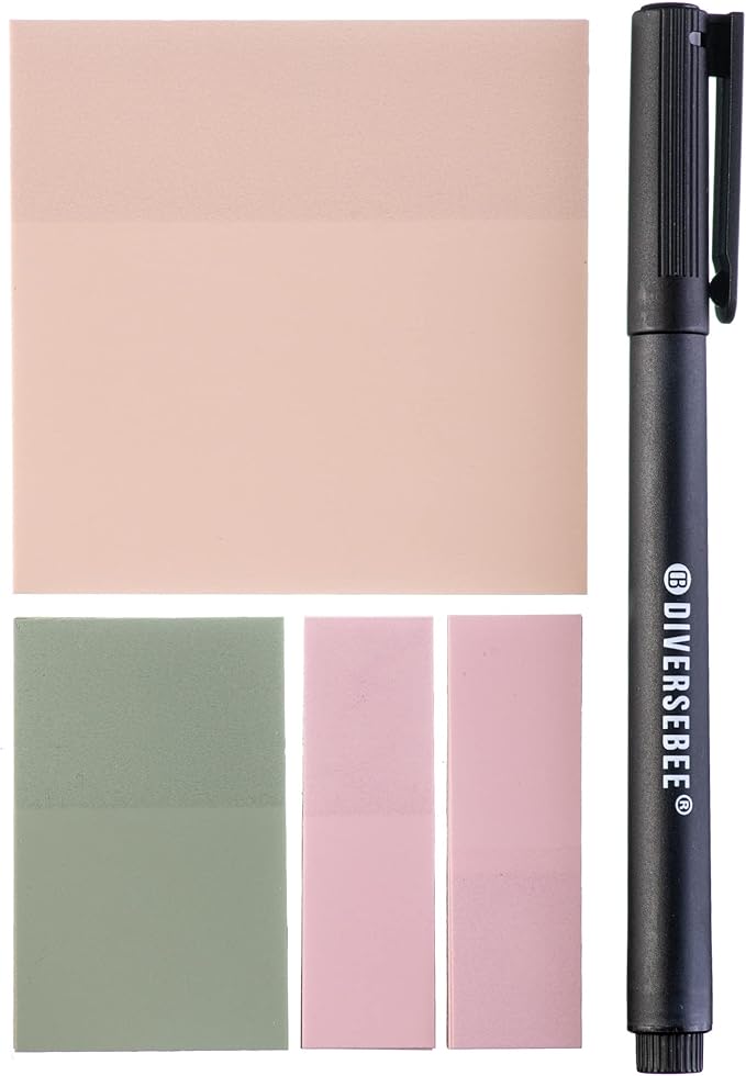 DiverseBee Transparent Sticky Notes (Includes Quick Dry Pen), Cute Clear Sticky Tabs, Translucent Page Flags Book Markers Stickers, Planner Accessories Bible Journaling Study Office Supplies (Pastel)