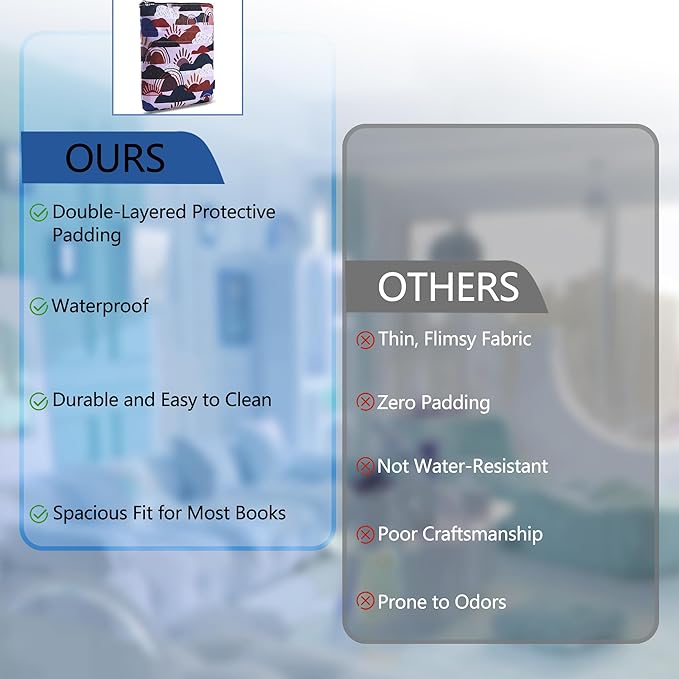 - 【ZIPPERED CLOSURE&EXTRA POCKET】 Features a high quality smooth zippered closure for added protection, keep your books from scratch. Ideal to keep your books safe whilst travelling.Extra pocket on the front can hold a notebook, small journal, pen/pencil, phone, kindle, or even some smaller books!