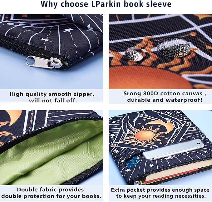 - 【Why choose LParkin book sleeve?】 LParkin book sleeve is made of high-quality 800D canvas and waterproof material, and strict tailoring technology ensures that the book sleeve you receive is perfect. No irritating smelling, No harm to health, No low-grade materials. It's just a high-quality book sleeve!