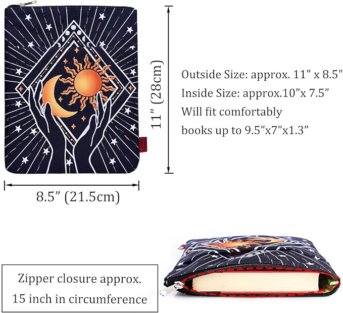 - 【BOOK PROTECTOR】 The sun and moon book sleeve, ideal for protecting your favourite books wherever you go, no more damage or bent page in the bag .This Exquisite book sleeve designed featuring holding the sun and moon in both hands ,is perfect for a astrologer who loves reading.This item is not intended for use by children 3 and under.