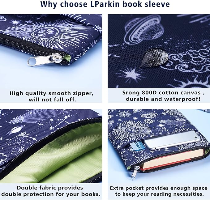 - LParkin book sleeve is made of high-quality 800D canvas and waterproof material, and strict tailoring technology ensures that the book sleeve you receive is perfect. No irritating smelling, No harm to health, No low-grade materials. It's just a high-quality book sleeve!