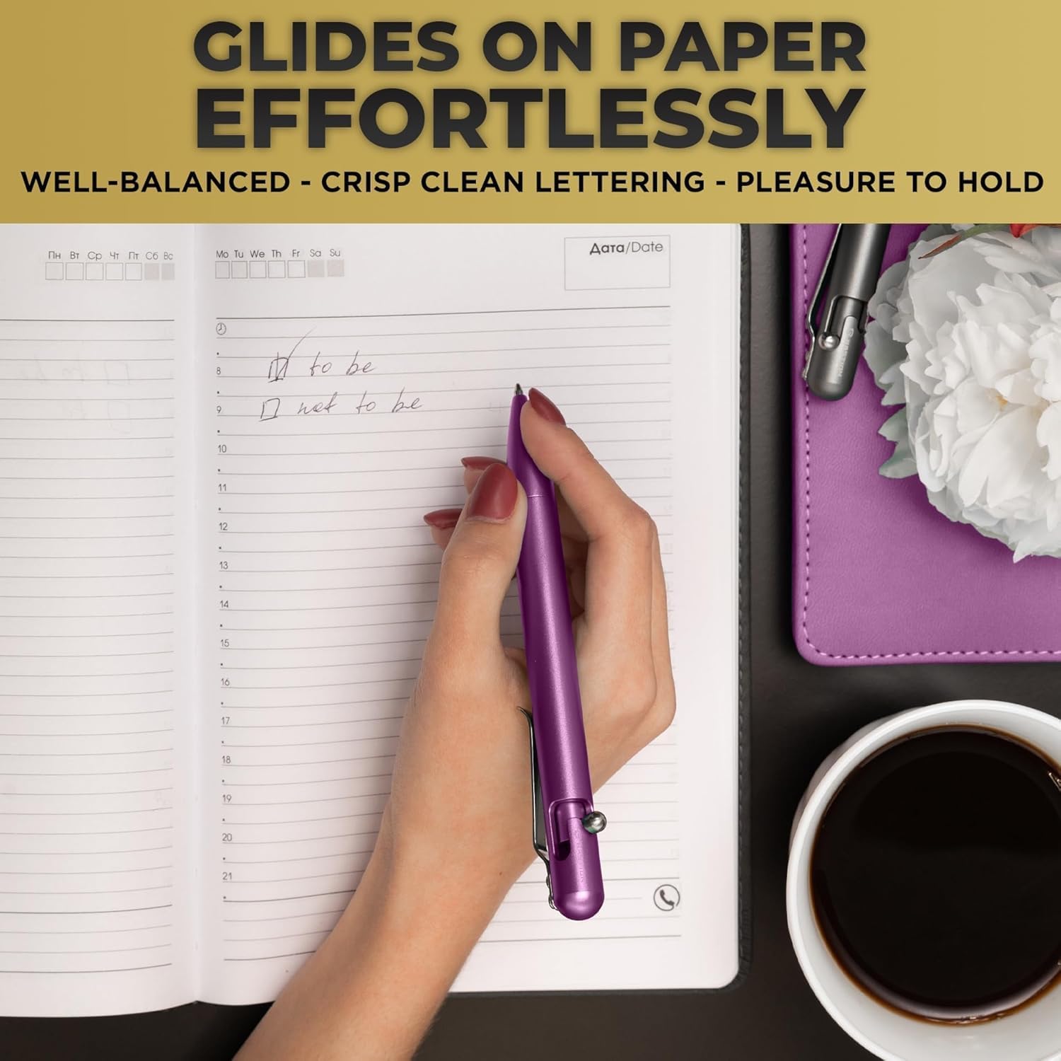 BASTION® Luxury Slim Bolt Action Pen, Lightweight Aluminum EDC Pen with Fine Tip, Professional Ballpoint Pen for School and Work - Purple