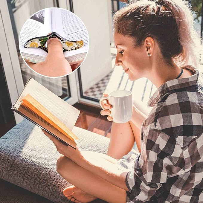 SKYNEO Book Page Holder, Thumb Book Page Holder, Dried Flowers for Resin Page Holder, Book Reader Reading Accessories for Teachers Gift and Bookworm Gifts, Gifts for Book Lover - Black
