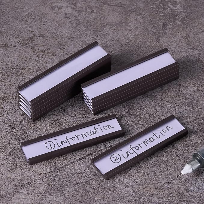 - Easy to use: write on the included paper strip, slide in the paper insert and the transparent protective film, stick the magnetic label holder to clean and flat surface, saving time and making reposition easier compared with traditional adhesive labels