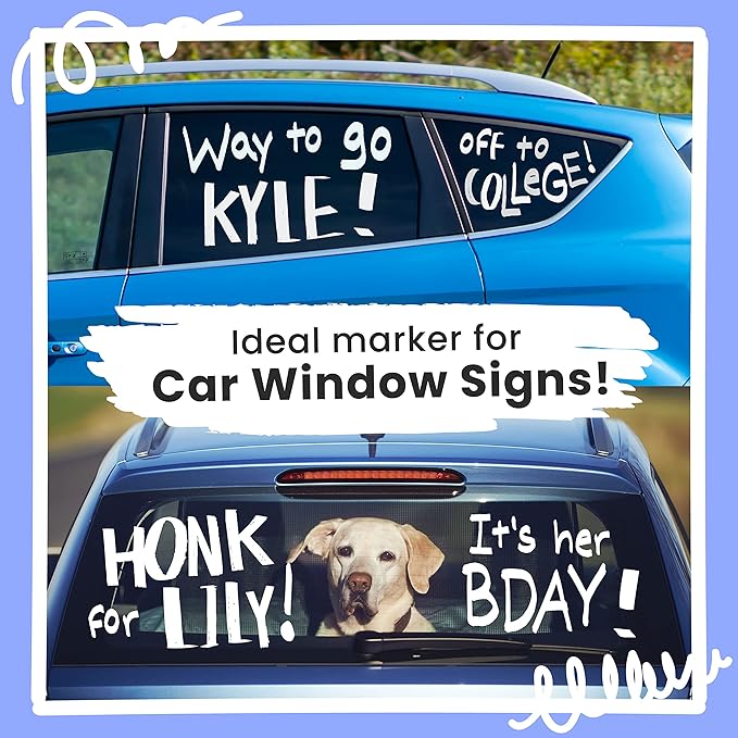 White Jumbo Chalk Markers - 15mm Window Markers | Pack of 4 White Pens - Use on Cars, Chalkboard, Whiteboard, Blackboard, Glass, Bistro | Loved by Teachers, Artists, Businesses