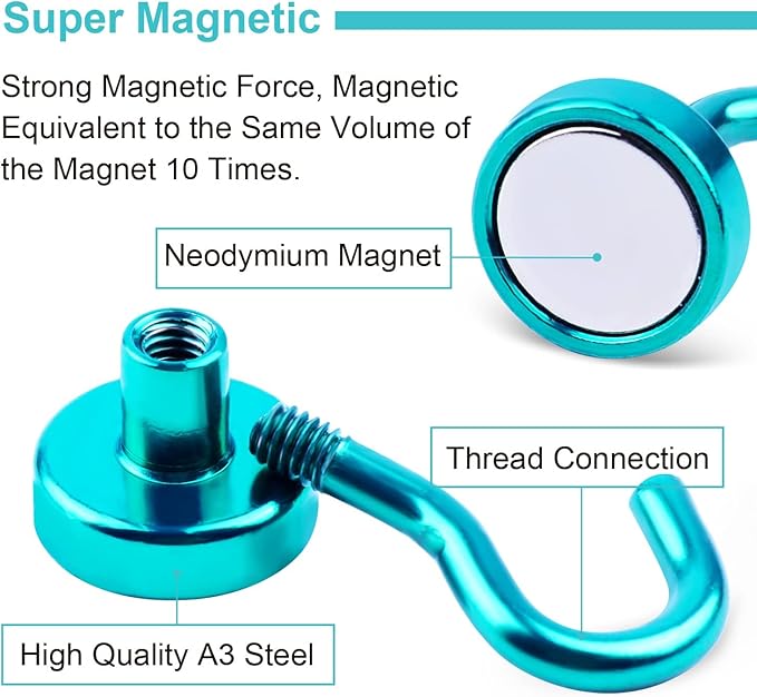 - 【Versatile Use】 Rare earth neodymium magnet hooks are ideal for hanging various household articles, office material etc., great for organization. They are also widely used in cruise, fridge, kitchen, locker, workplace office, garage, indoor, outdoor and anywhere there is iron or steel. No drilling holes, No sticky residue, No bolt or screws; Easy to install or remove and reusable.
