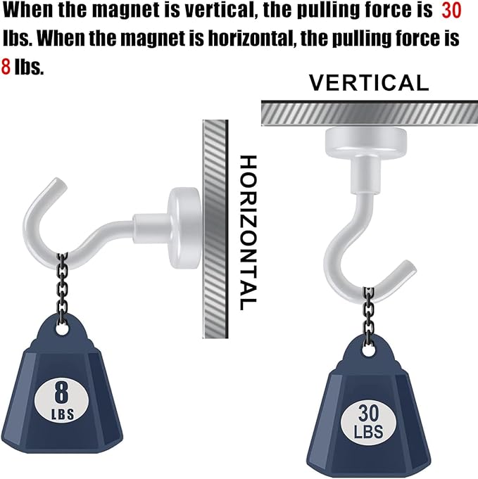 - 【Quality Guarantee】Strong neodymium magnetic hooks are extremely high quality and are checked during and after production for quality, your purchase is protected. Please contact us if you have quality problems, we are very pleased to assist you to refund or make replacement.