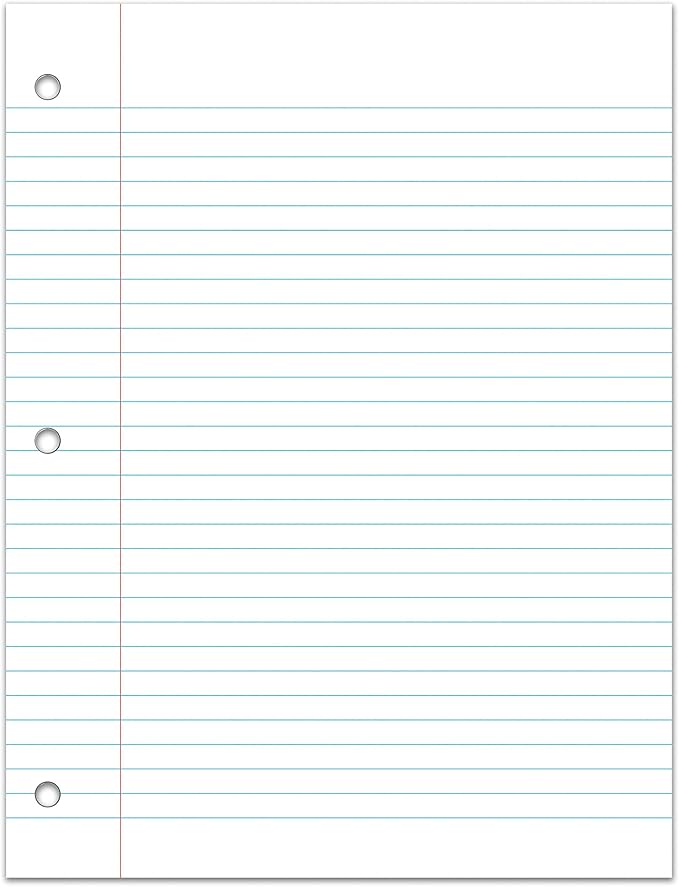 - College ruled format bright white paper is lined with margin space to allow for neat writing. Pages measure 8” x 10-1/2” in size so they can easily be inserted in all letter-size folders, files and binders.