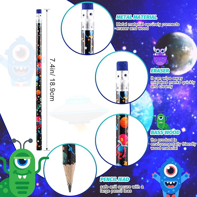 - Assorted Space Designs: our pencils are printed with many space elements, such as planet, alien, space, starry sky, aircraft, and so on, vivid and attractive, can attract the focus of lids