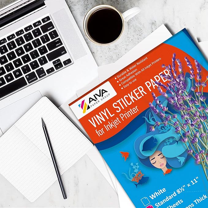 - High-Quality Printable Vinyl Paper - set includes 30 white vinyl sheets of Printable Sticker Paper for printer, Glossy finish. US Standard Letter Size - 8.5"x11". Suitable for High resolution and clear image quality