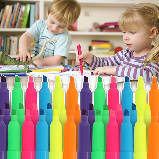 - 6 bright colors pack of 60 highlighter markers, include yellow, pink, orange, green, purple and blue,no bleed.