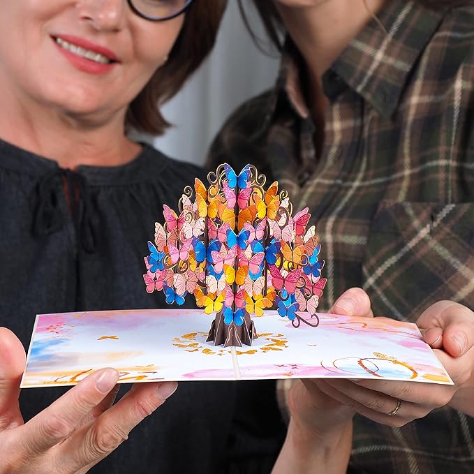 - EXQUISITE DESIGN - This Butterfly tree popup card by Paper Love features a beautiful and unique greeting card where vibrant butterflies gracefully replace the leaves on the tree branches. A memorable gift for all occasions that can be kept as a keepsake.