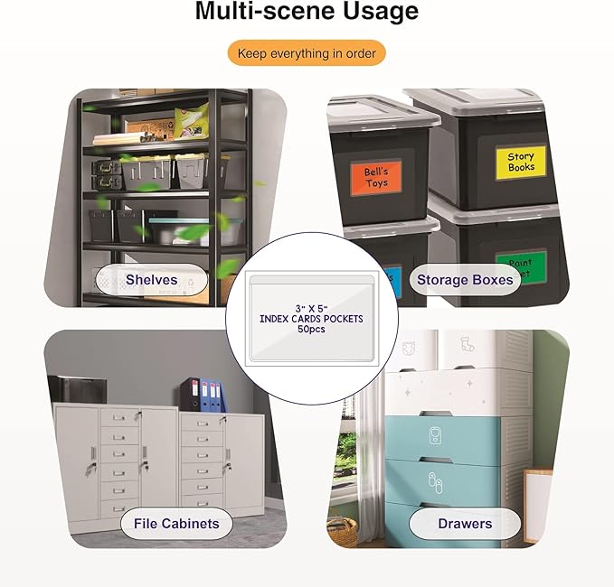 - Versatile Use: Keep these clear sleeves handy at home, in the classroom or in the office; they can be used for reminding, learning, presentations, marking, labeling, inserting index cards or name tags, packaging and shipping. Commonly used to label and organize: bins, totes, notebooks, boxes, drawers, containers, desks, library card pockets.