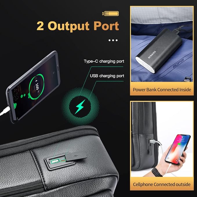 - Multipurpose - Roomy backpack with IPAD,laptop compartment,holds up to most 15.6 inch Laptop/MacBook/NoteBook.Made of animal leather and ballistic nylon material.Best choice for you in business,office, commuter,travel.