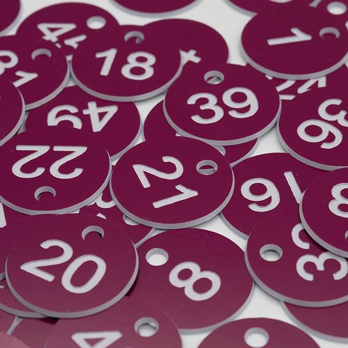 StayMax Plastic ID Number Tags Engraved Tags Key Tags Without Key Rings (1-50, Purple)