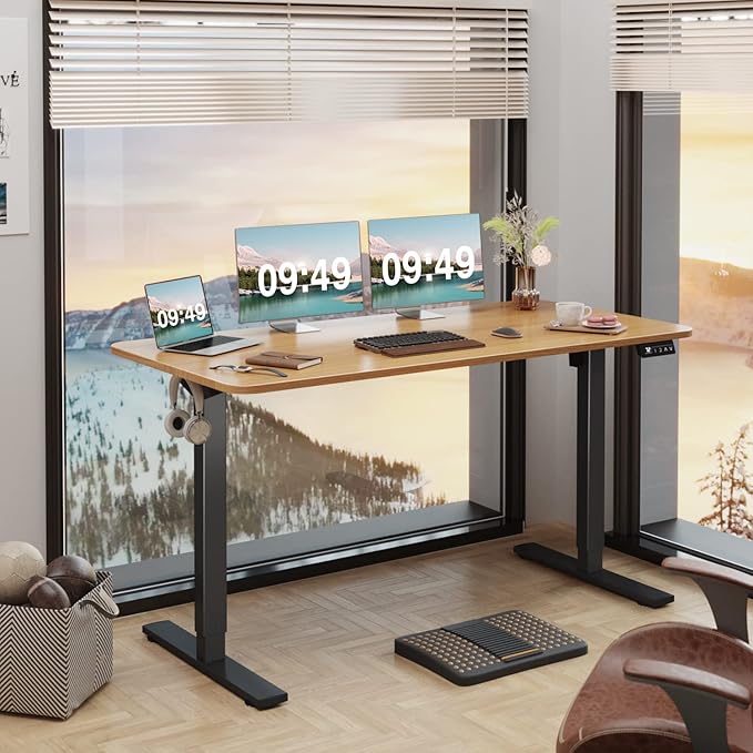 Furmax Electric Height Adjustable Standing Desk Large 55 x 24 Inches Sit Stand Up Desk Home Office Computer Desk Memory Preset with T-Shaped Metal Bracket, Maple