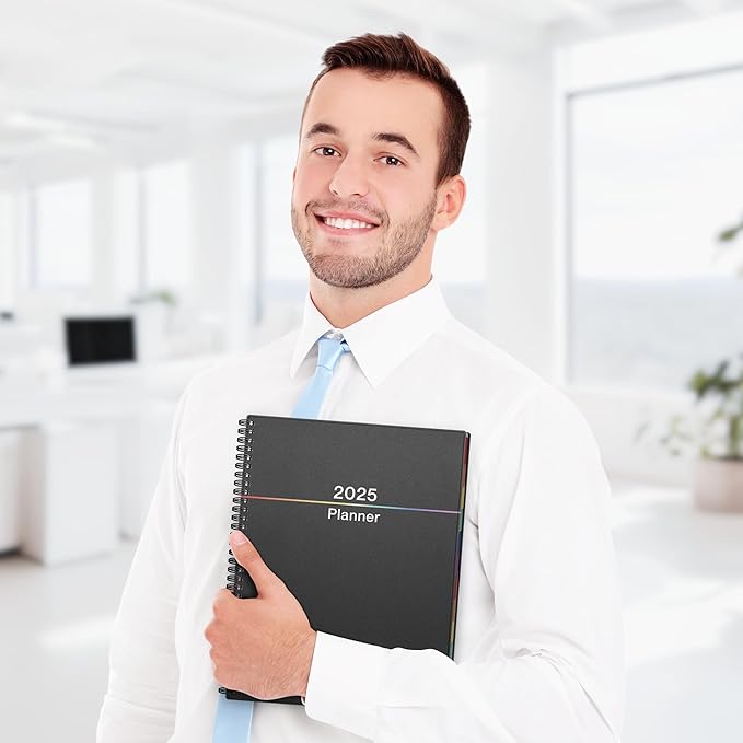 - 2025 Planner Book: Use 12 Months, Jan 2025 to Dec 2025, Planner: 8.5x11 Planner Book, Generous size for home or office. Includes: Laminated colorful tabs, Bookmark, 8" Back pocket (not letter size), Stickers.