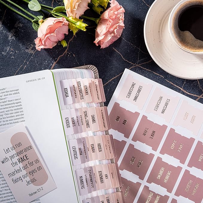 - Easy to Apply, Alignment Guide Included: The peel-and-stick Bible index tabs are self adhesive, simply align them with the provided guide or place them creatively in your new Bible. The Bible stickers are pre-scored in the middle for easy folding.