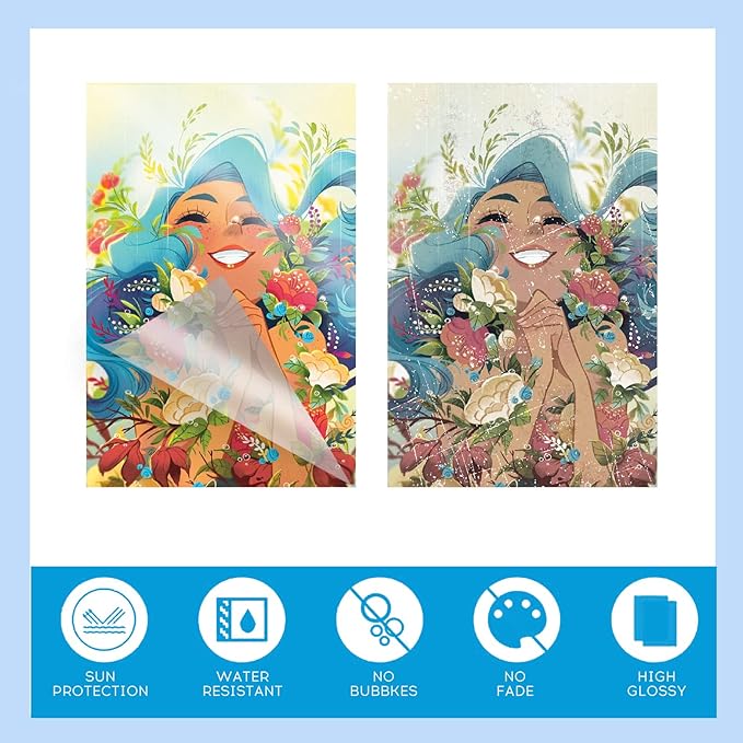 - Bright Clarity: These water-proof self adhesive laminating pouches featured by top quality PET material. High transparency, easy to see photos beneath the finish.